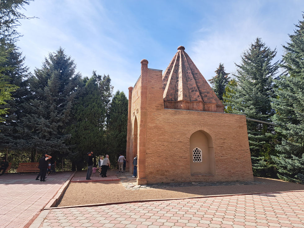 Manas Ordo Culture Complex: The park is built around this mausoleum called The Dome of Manas in English. It was built in the 14th century. According to legend, it's the final resting place of Manas, the Kyrgyz national hero and main character of Kyrgyzstan's origin story, the Epic of Manas. However, there is an inscription saying a woman is buried here. It's thought that this was a diversionary tactic to prevent enemies from finding the tomb of Manas and desecrating it. Today, people walk around it counterclockwise while tapping the brick walls as they pray. Of course, this is a place well known to local tourists, but largely unknown and off the beaten path for international tourists.