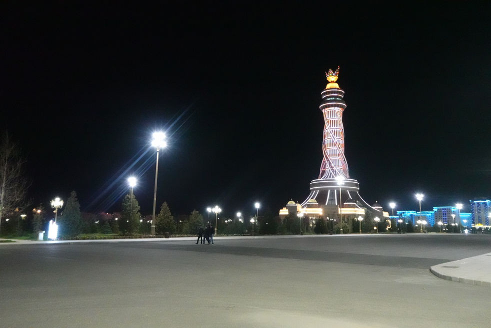 Monument Istiklol: Also know as the Independence and Freedom Monument, it's at the center of a massive square with 3 different entrance gates down wide pedestrian boulevards to the north, south, and east. During the day, and later at night, it was surprising how few people were actually in this park (it's not called a park, but it's basically a giant park). The peacefulness of these types of areas gave Dushanbe a sense of being a sparsely populated capital city. Unfortunately, the observation deck was not open when I was there. According to a Xinhua article, this structure was built as a gift from the Chinese leader Xi Jinpingto the people of Tajikistan.